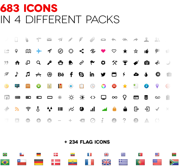 There are two types of icons included – font icons, which are vector files, so can be scaled to any size without quality loss, and image icons, which are 16×16 px (and 32×32 px for Retina displays) raster files.